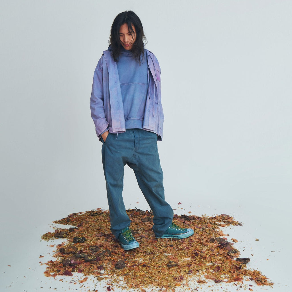 ALUNIA preserves traditional luxury craftsmanship and combines it with a modern, urban aesthetic. They ingeniously produce timeless, luxurious pieces featuring contemporary designs. Botanically derived dyes made from Chinese medicinal herbs like Black tea, Sappanwood, and Indigo are used in their products. These natural dyes integrate traditional techniques and cultural heritage, giving each piece unique textures with the handmade artisanal application of colors that evolve, reflecting the wearer’s journey.