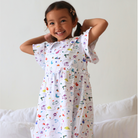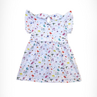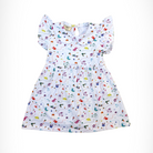 Let your little one twirl through the day in our adorable Dress in Lumi the Gentle Bunny pattern. The dress features a sweet A-line silhouette with soft ruffle details at the waist, giving the freedom to play in style comfortably. Featuring a classic Peter Pan collar and adorable short ruffle sleeves, this dress blends timeless charm with playful energy. The cheerful and colorful pattern adds a pop of fun a perfect everyday outfit for playdates, parties, or casual strolls.