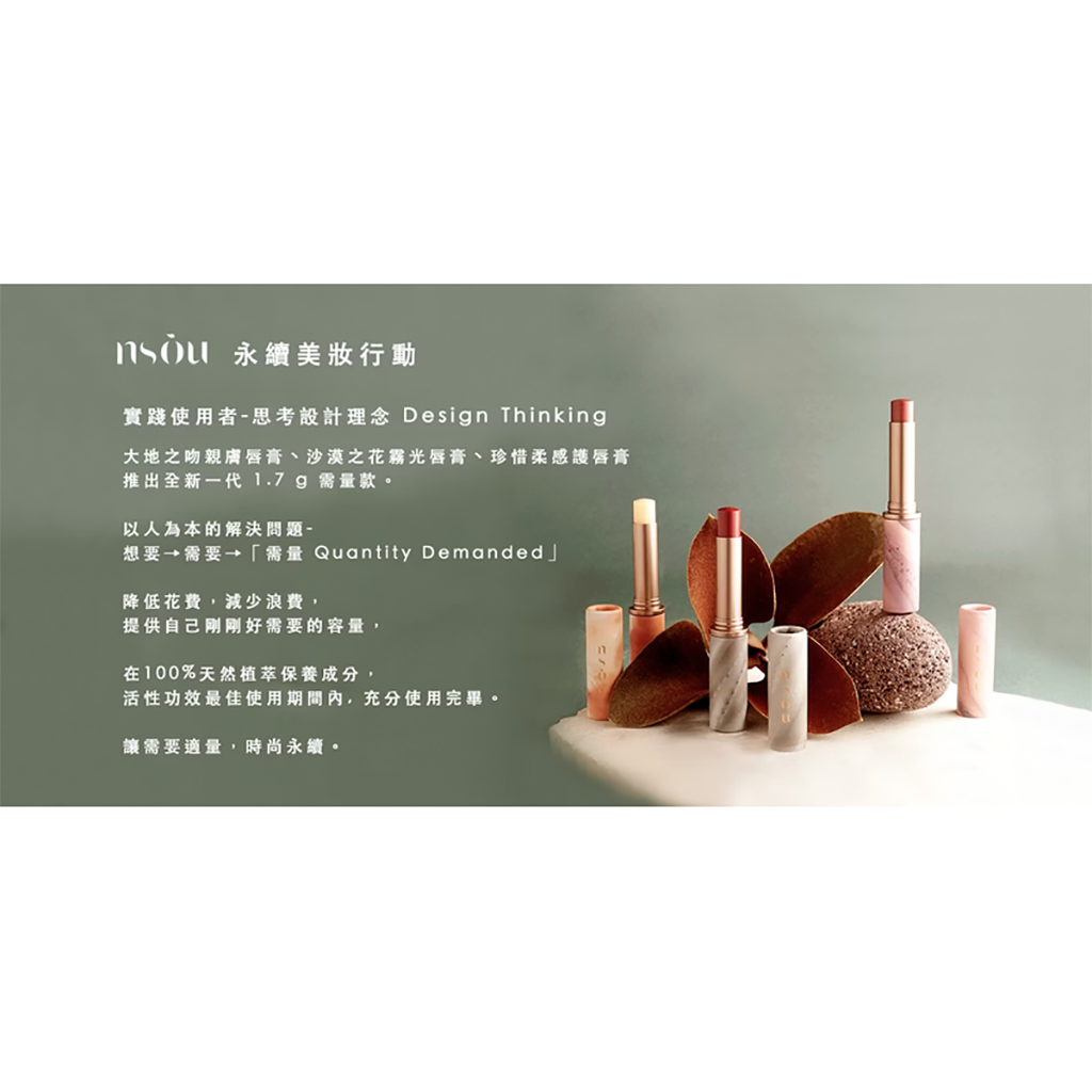Made with EU-certified ingredients, this natural lipstick excels in both makeup effect and skincare performance. Easily removed with cleansing products, making it effortlessly natural. Pair with a rare, soft-touch lip balm as a base for a fashionable, soft glow without dryness.
