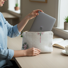 Hand block printed laptop sleeves are a stylish and practical way to carry laptops, tables and digital and accessories. Lightly quilted and generously sized with a secure zipper and delicate handmade tassel detail.