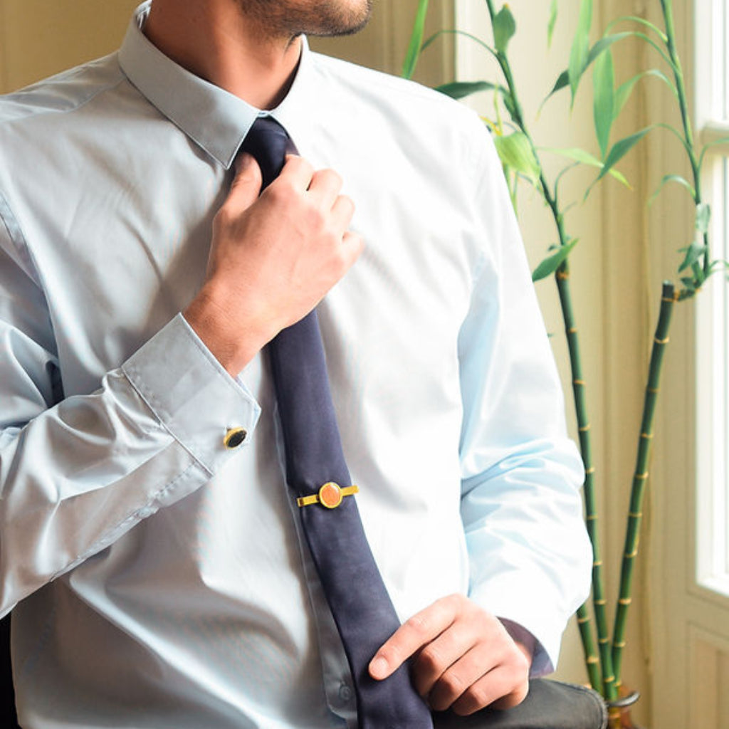 - Each tieclip is made from upcycled fruit and vegetable scraps, hand-finished to carry stories of quiet resilience and warmth. These are not declarations, but offerings subtle signs that steadiness, when shared, becomes sanctuary.