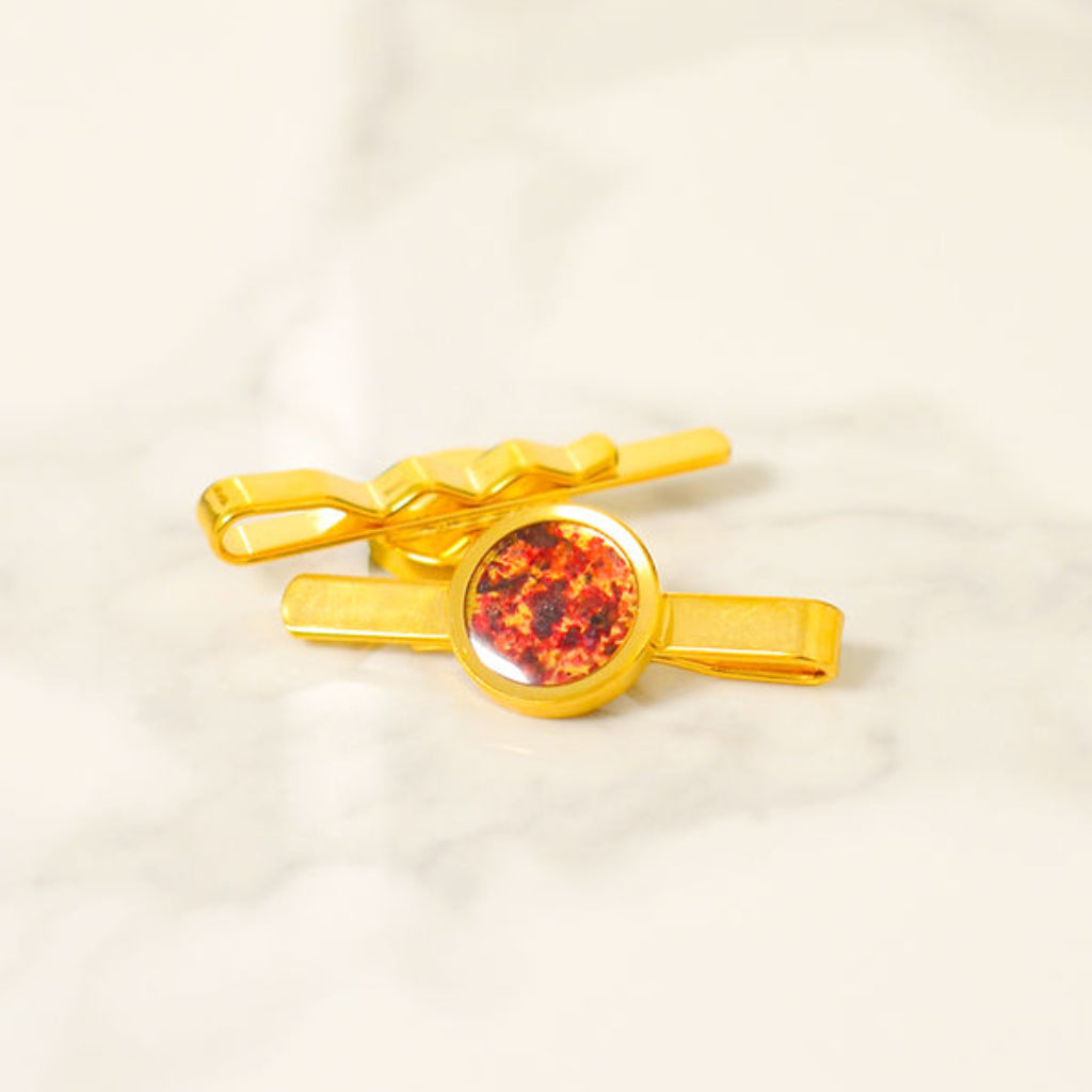 • Each tieclip is made from upcycled fruit and vegetable scraps, hand-finished to carry stories of quiet resilience and warmth. These are not declarations, but offerings subtle signs that steadiness, when shared, becomes sanctuary.