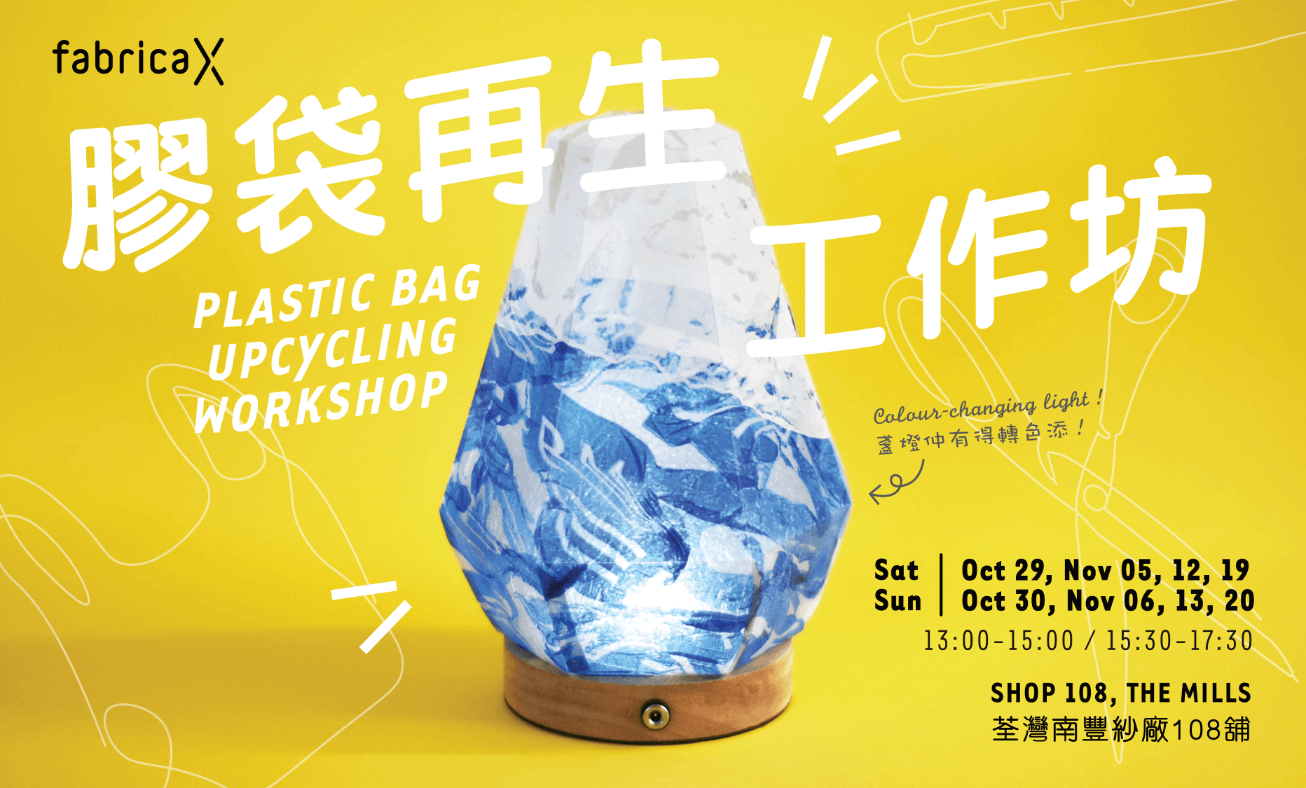 Join our Plastic Bags Upcycling Workshop at Fabrica X at The Mills to learn how to design your own lamp with upcycled plastic bags! There will be different shapes of lamps for you to choose from, let your creative juices flow by mixing and matching various colours and patterns from the plastic bags. Register for the workshop now and DIY your own unique lamp!