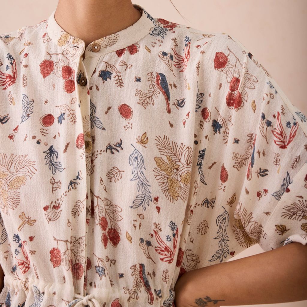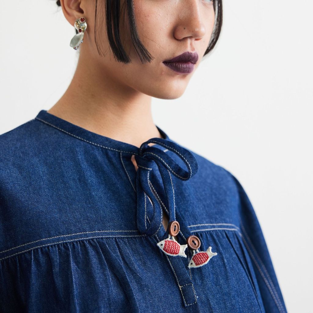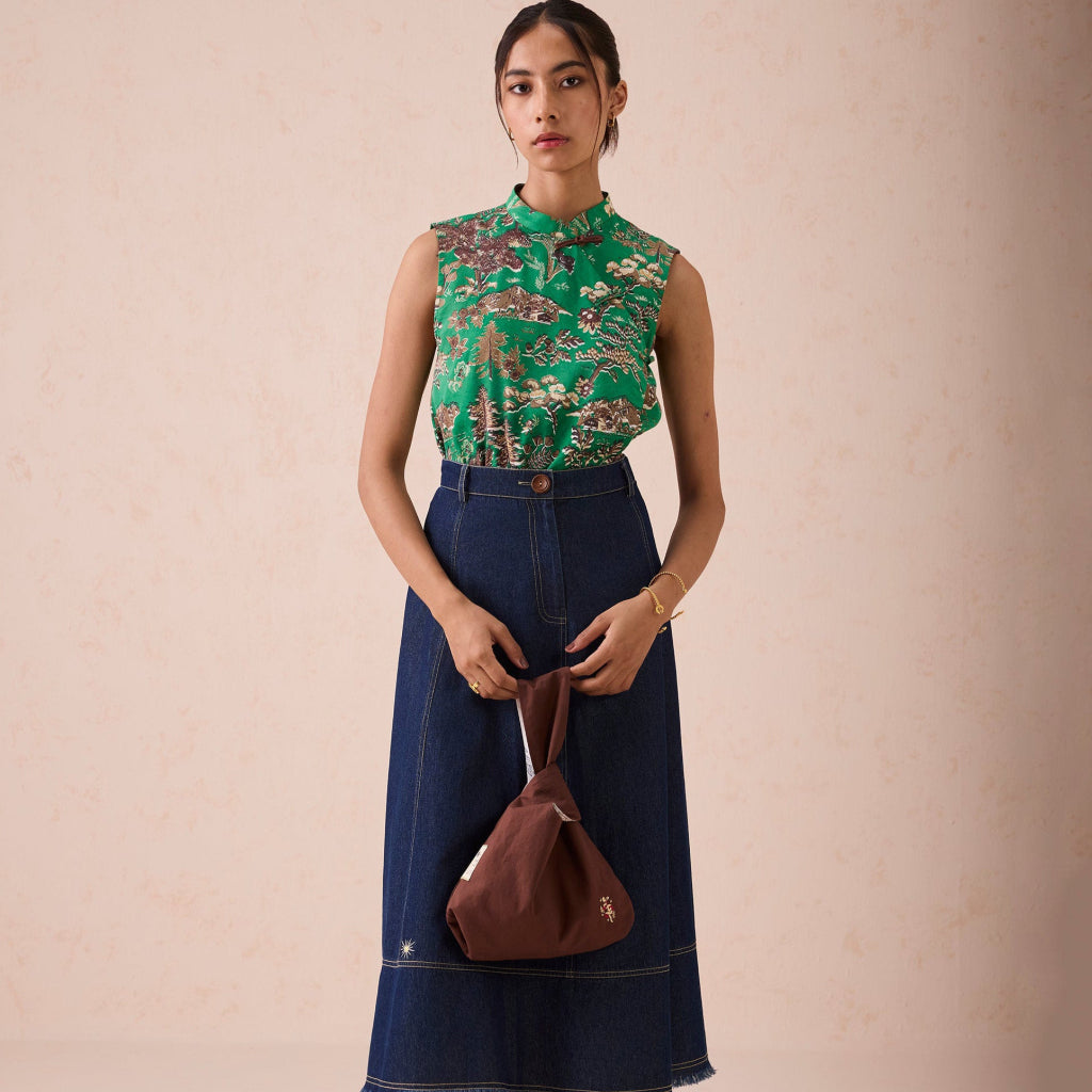 SUI, based in India and Singapore, crafts versatile womenswear, working with artisans and small-scale vendors to promote Indian crafts and sustainable fashion. They use handspun, handwoven fabric and collaborate with Bagru Rajasthan’s block printing community, producing their garments at their workshop in New Delhi. SUI uses azo-free dyes, wood cellulose fibers, and organic cotton woven in a GOTS-certified mill. They upcycle fabric scraps into accessories, minimizing environmental impact – a responsibility towards the planet.