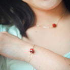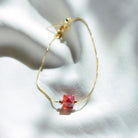 Upcycled by the dragon fruit peels, the Fierce gold sustainable adjustable bracelet with red small cube bead is designed to celebrate women for her boldness in showing her personality and styles.