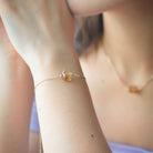 Upcycled by the orange peels, the Fierce gold sustainable adjustable bracelet with yellow small cube bead is designed to celebrate women for her boldness in showing her personality and styles.