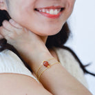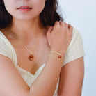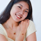 The Mystical gold sustainable double chain bracelet, with its brown bead upcycled from brown onion peels, is meticulously designed to evoke a sense of intrigue and wonder. It captures the enigmatic shades of nightfall, echoing the secrets hidden in the depths of twilight.