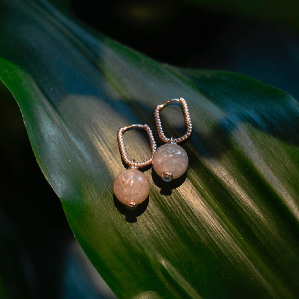 The Vibrant sustainable rose gold rectangle earrings, with its pink beads made from garlic peels, ignite with life and energy and reflect a woman's fierce resilience. These earrings are a glowing testament to strength that radiates through warmth and compassion.