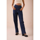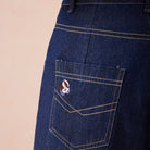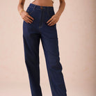 Fitted, straight-leg trousers that buttons at the waist, crafted in cotton denim fabric created with a blend of cotton and recycled cotton fibres, hand embroidered with a teacup motif. A classic pair of jeans are a perfect everyday go-to piece you can pair with shirts, crop tops, kurtas and more.