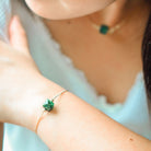 Ways Out - "Persistent" Gold Sustainable Adjustable Bracelet with Green Small Cube Bead