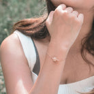 The Radiant rose gold sustainable adjustable bracelet, with its pinkish bead touched by garlic peel pigments, shines with inner strength and outer beauty, and symbolizes the enduring glow of a woman¡¦s resilience, reflecting both her firm resolve and tender nature.