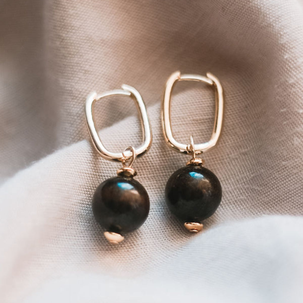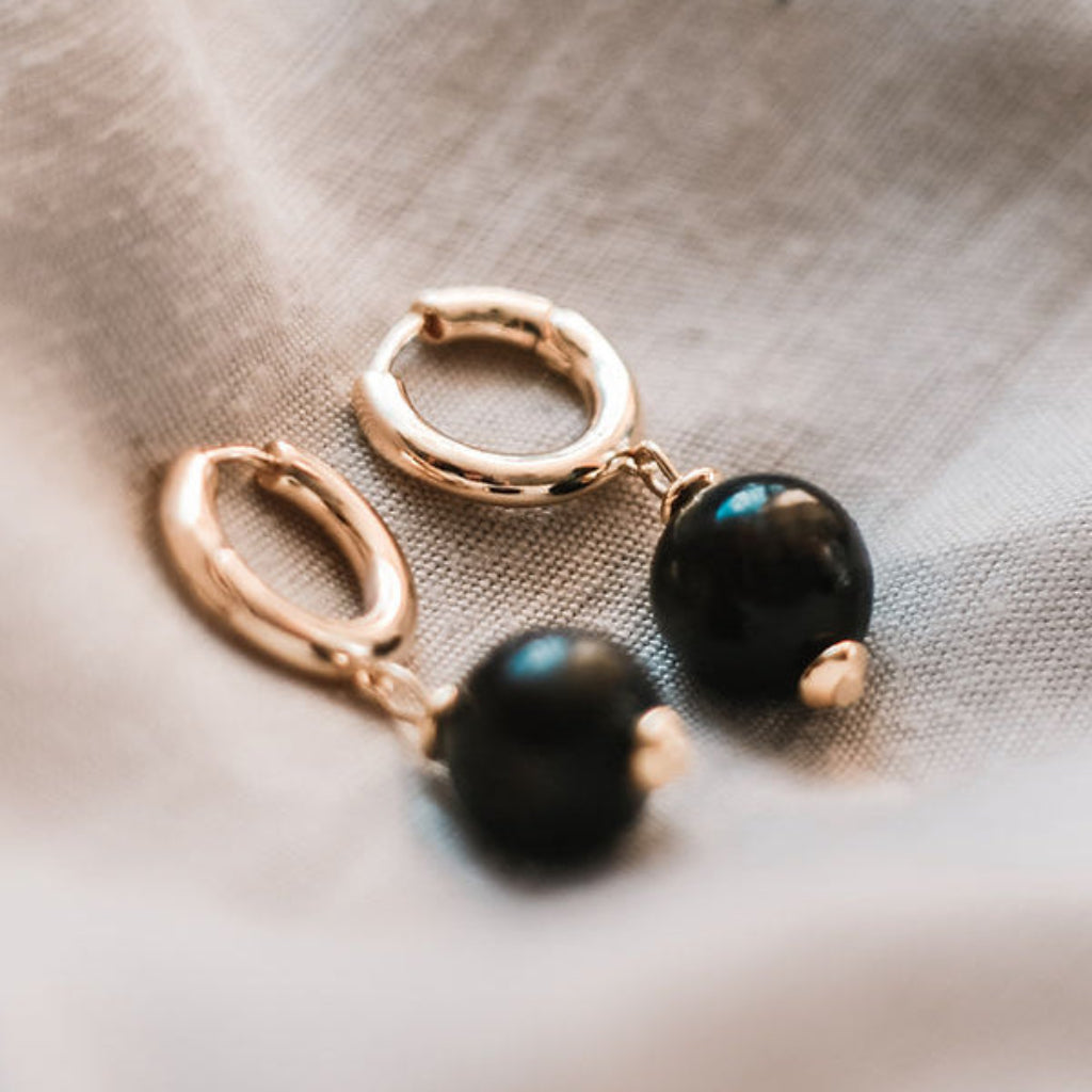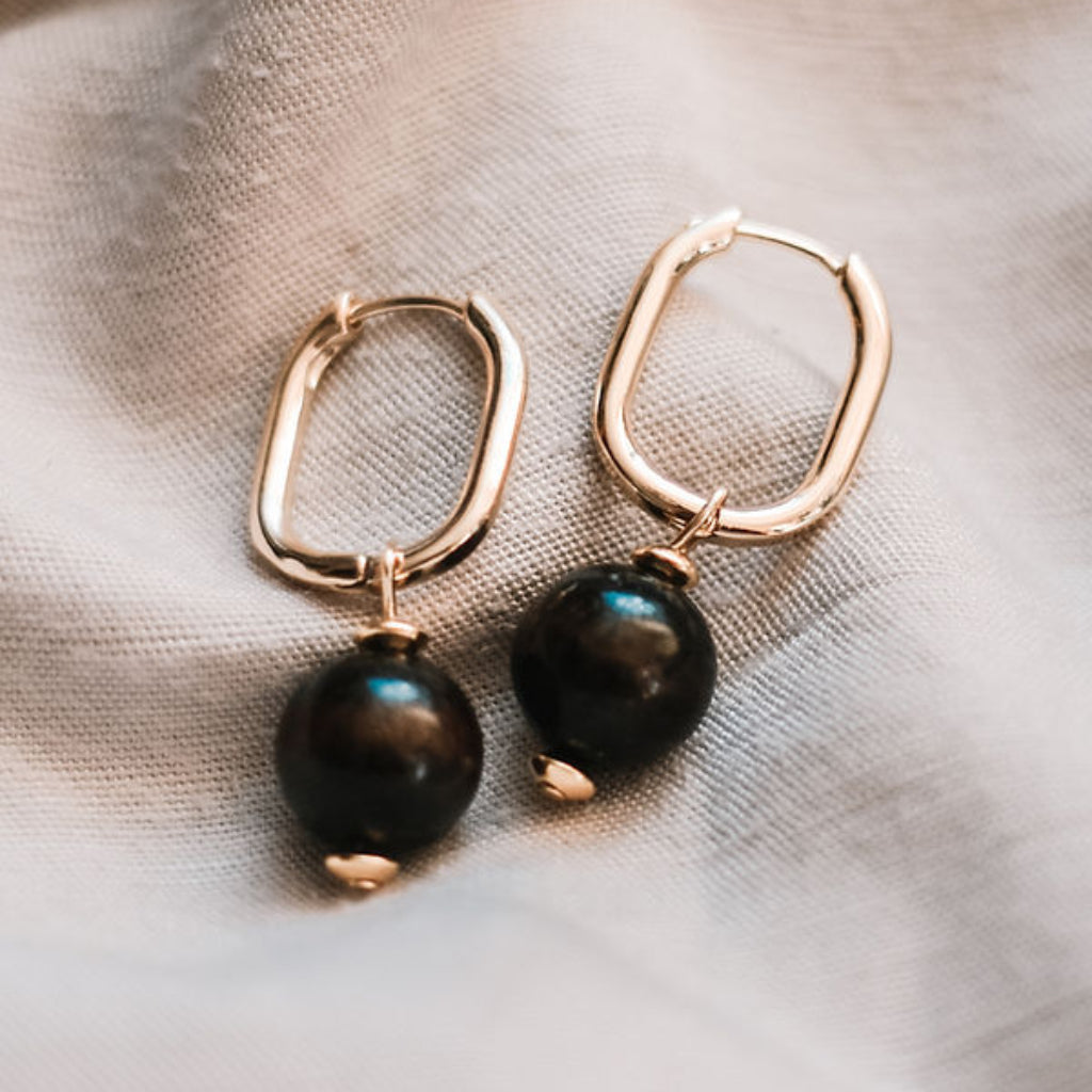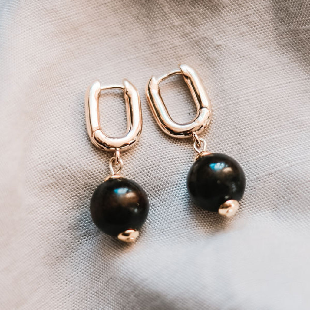 Ways Out -"Earthy" Gold Hoop Sustainable Earrings with Black Round Beads