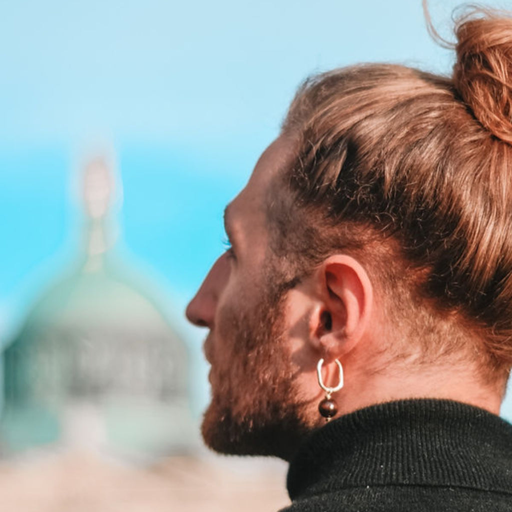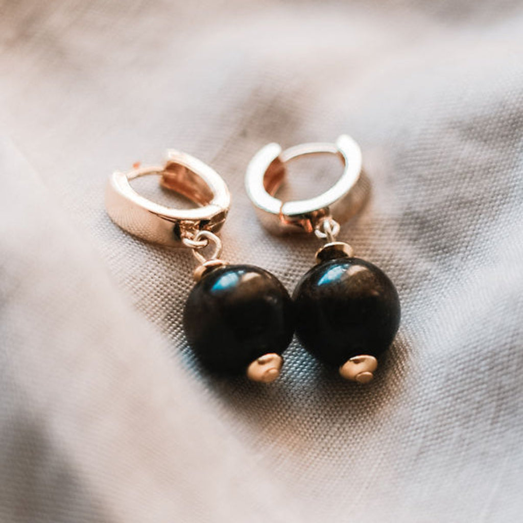 Nature-inspired earrings - the Earthy gold hoop sustainable earrings with minimalist style black round beads upcycled from coffee grounds, are designed to honor the splendid planet Earth, let your spirit rest in her solitary place, and for everyday wear with a sense of timelessness.