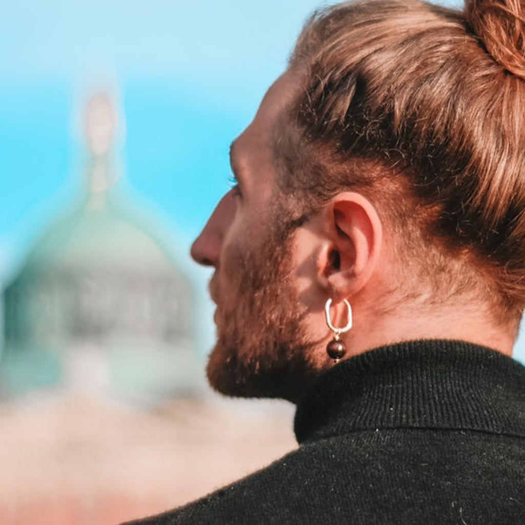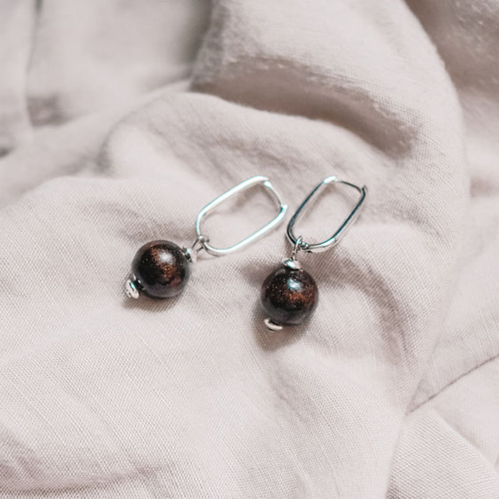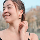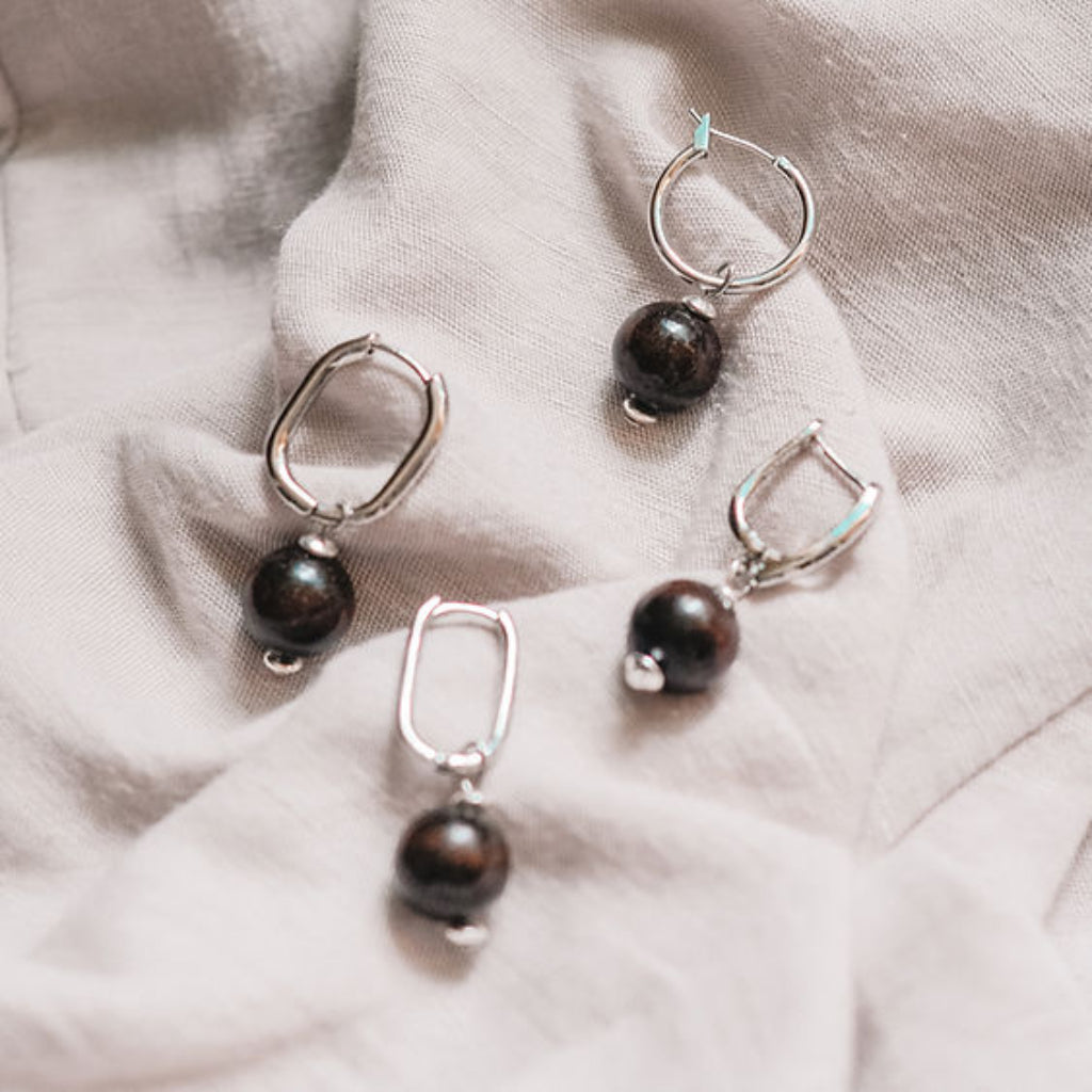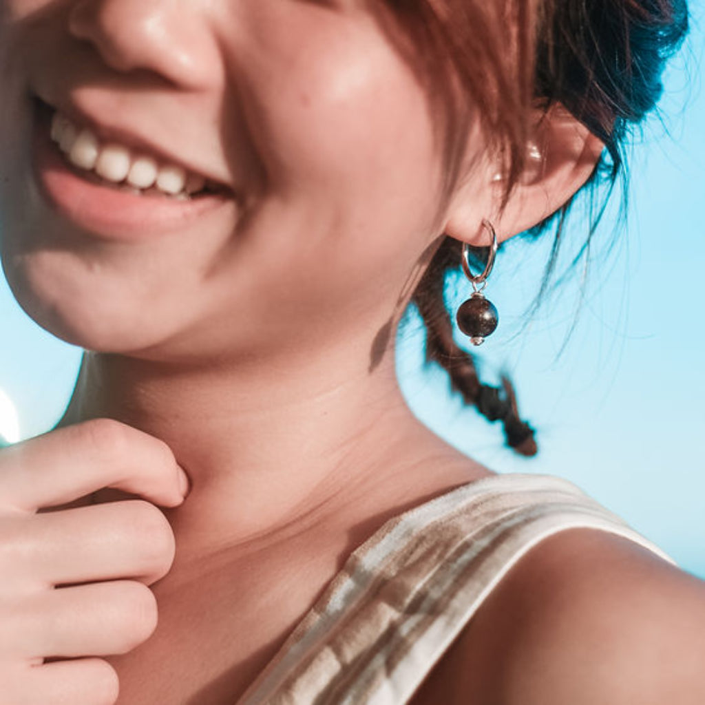 Nature-inspired earrings - the Earthy silver hoop sustainable earrings with minimalist style black round beads upcycled from coffee grounds, are designed to honor the splendid planet Earth, let your spirit rest in her solitary place, and for everyday wear with a sense of timelessness.