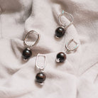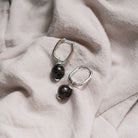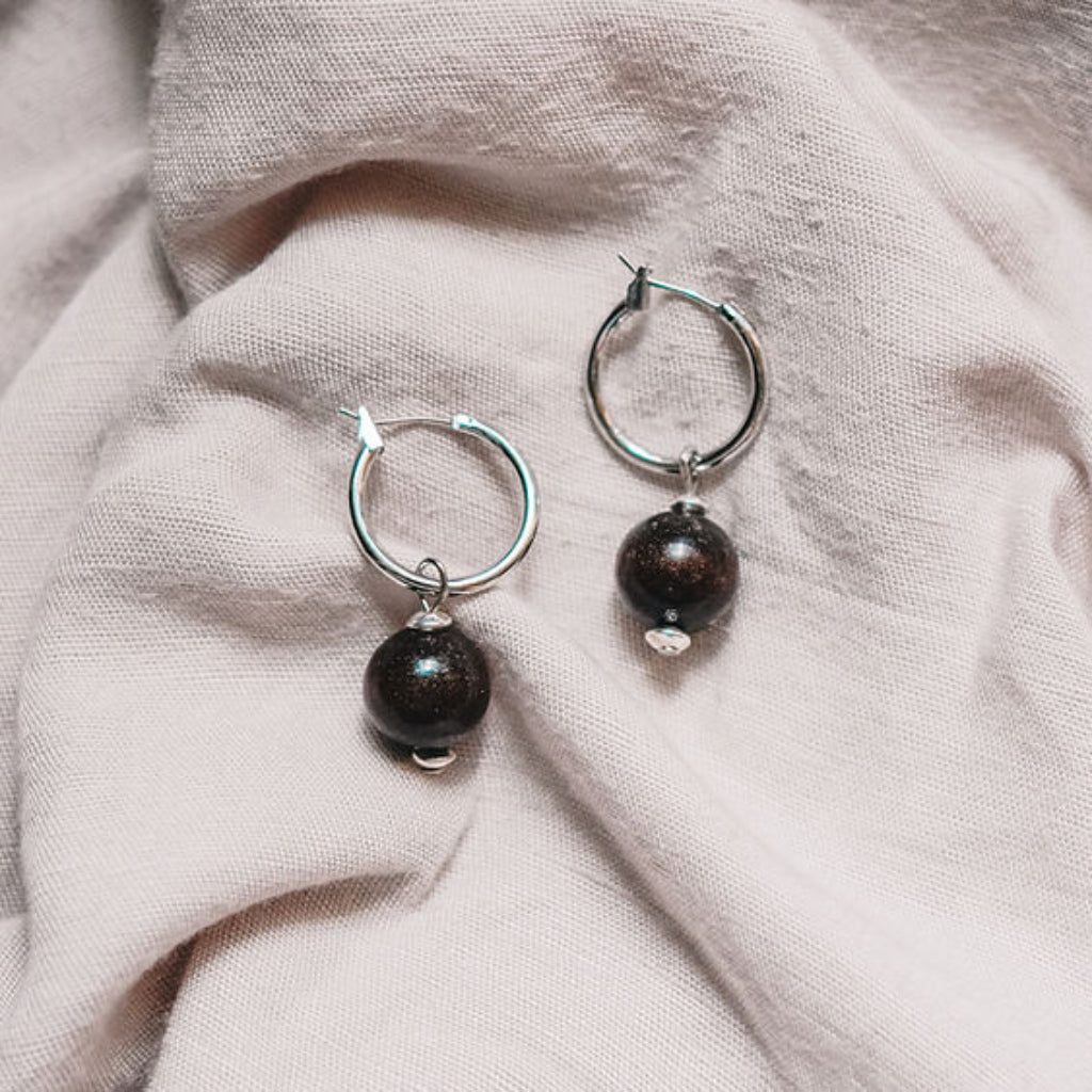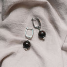 Ways Out -"Earthy" Silver Hoop Sustainable Earrings with Black Round Beads