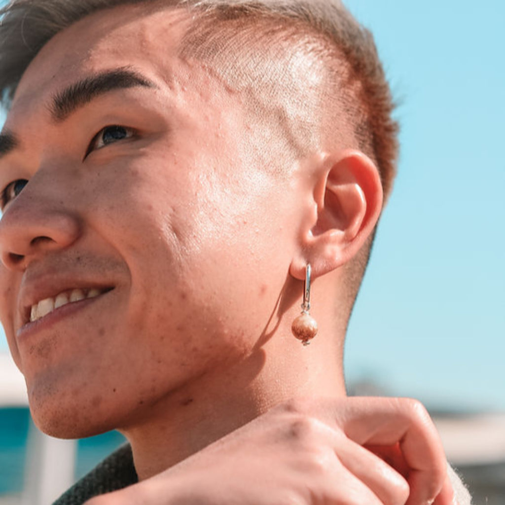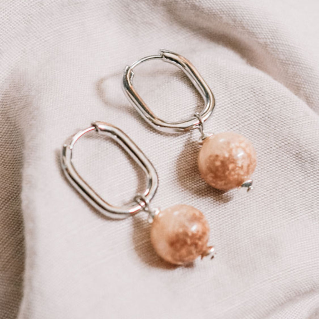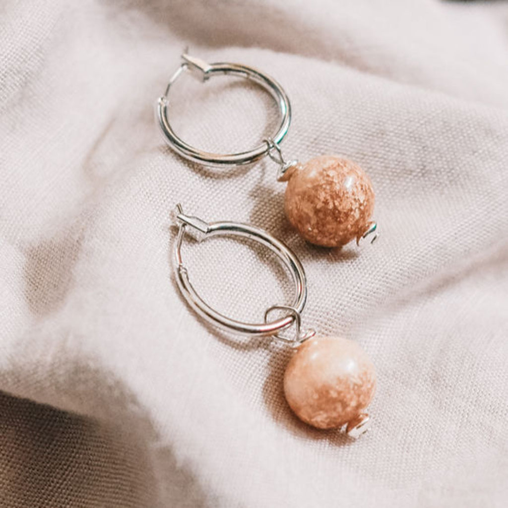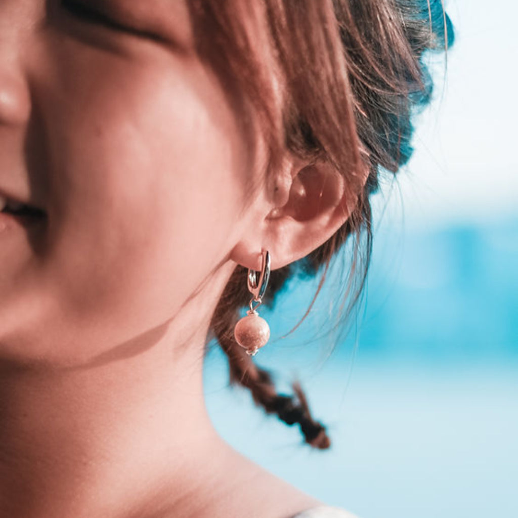 Nature-inspired earrings - the Earthy silver hoop sustainable earrings with minimalist style white round beads upcycled from radish peels, are designed to honor the splendid planet Earth, let your spirit rest in her solitary place, and for everyday wear with a sense of timelessness.