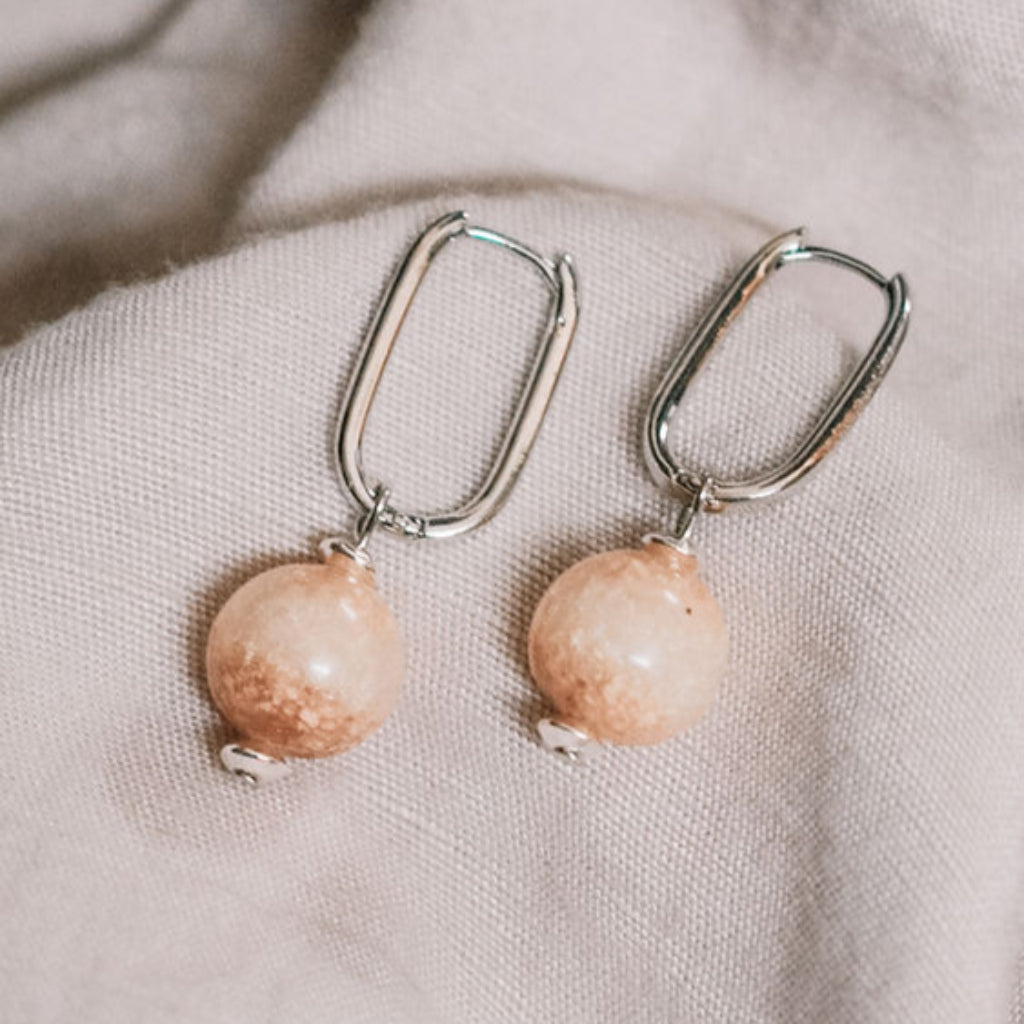 Ways Out -"Earthy" Silver Hoop Sustainable Earrings with White Round Beads