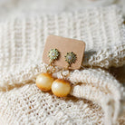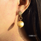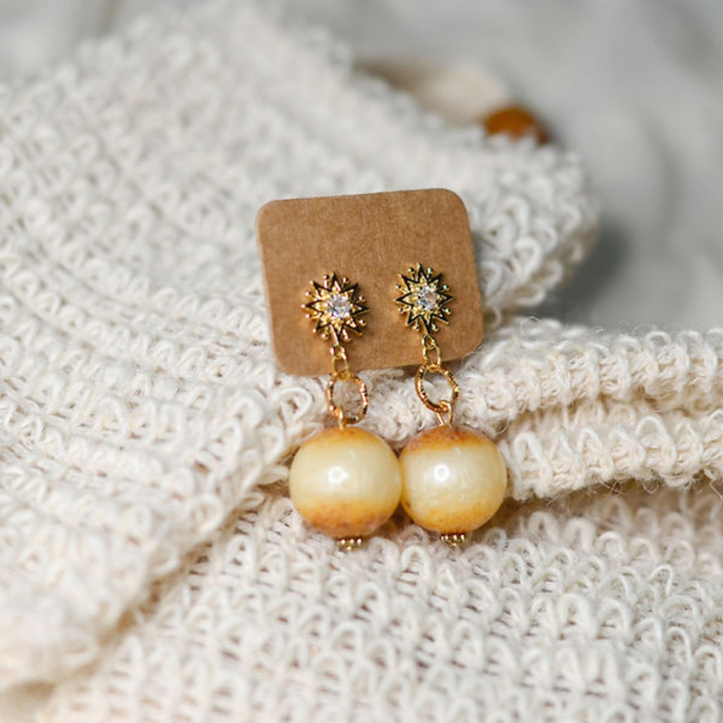 Gift a symbol of your power and self-love with Embracer- the Gold Star Stud Sustainable Earrings Connected Hoop With Big White Beads upcycled from orange peels.