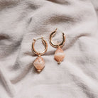 Ways Out -"Flowing" Gold Hoop Sustainable Earrings with White Pyramid Beads