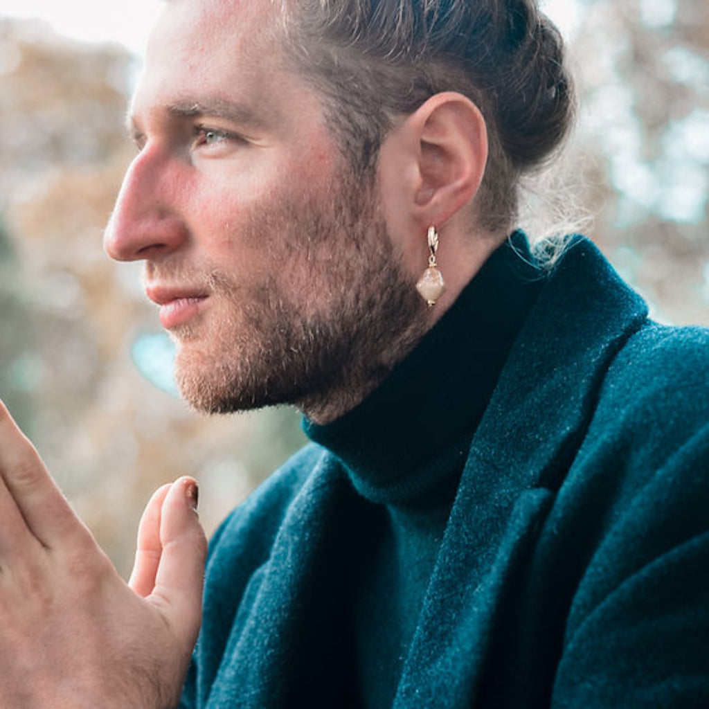 With its white pyramid beads upcycled from radish peels, the Flowing sustainable gold hoop earrings are of endless possibilities to finish your striking and ultra-glamorous look. Nature-inspired jewelry, the shape of water drop features the curves of flowing water and reminds you that you will find your way through any rock.