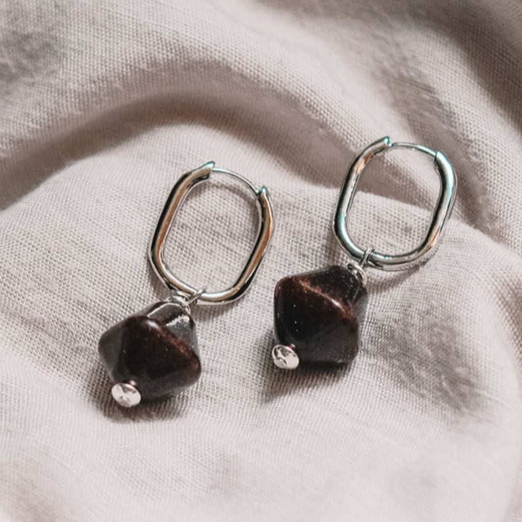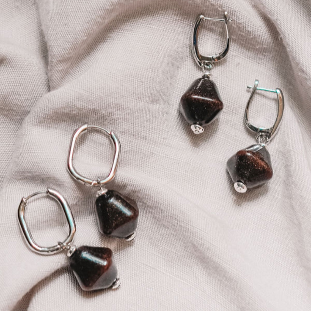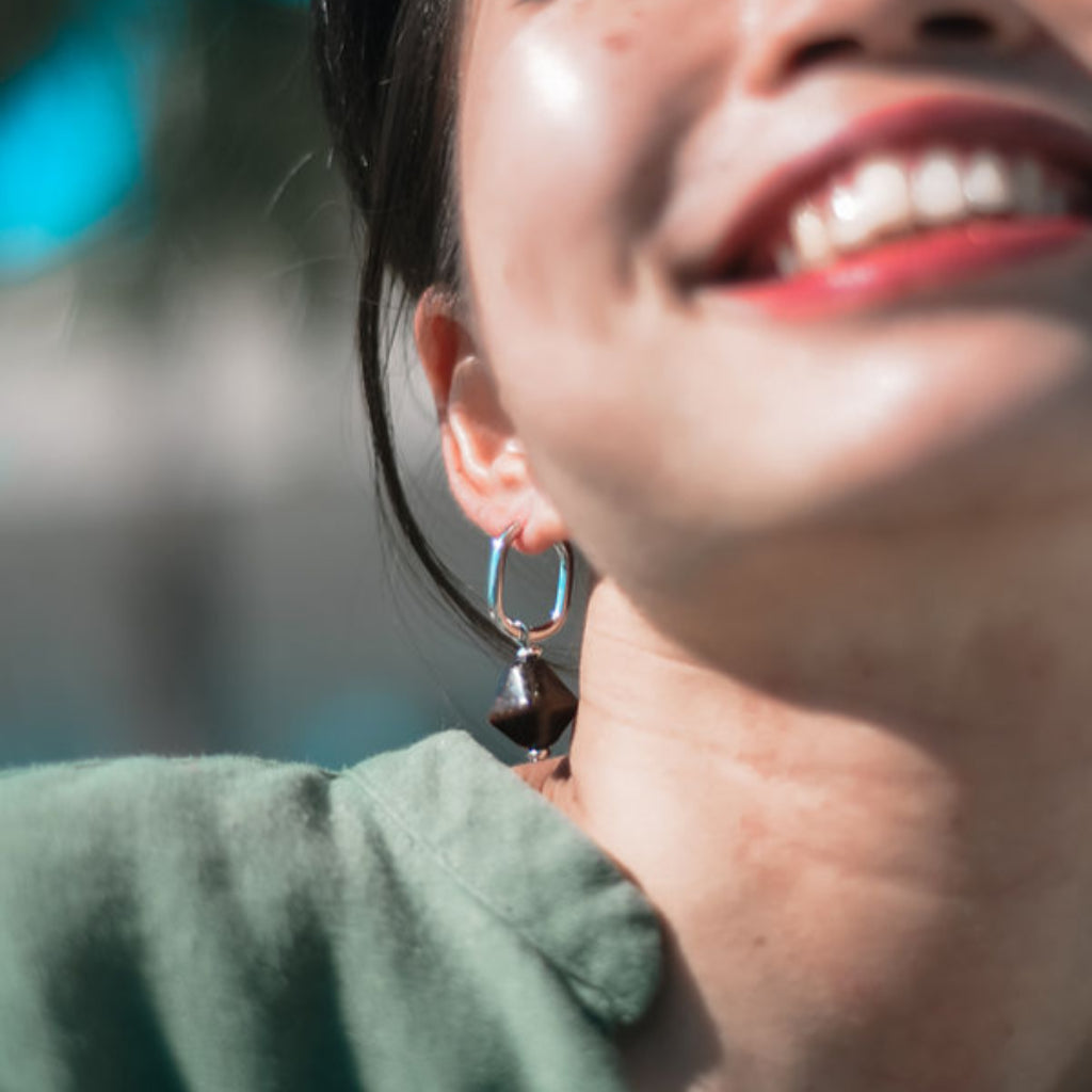 With its black pyramid beads upcycled from coffee grounds, the Flowing sustainable silver earrings are of endless possibilities to finish your striking and ultra-glamorous look.
