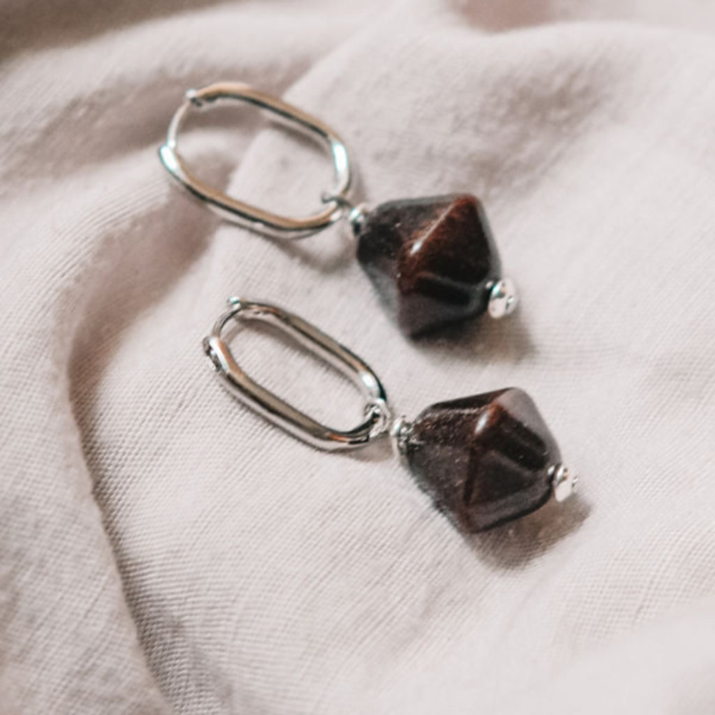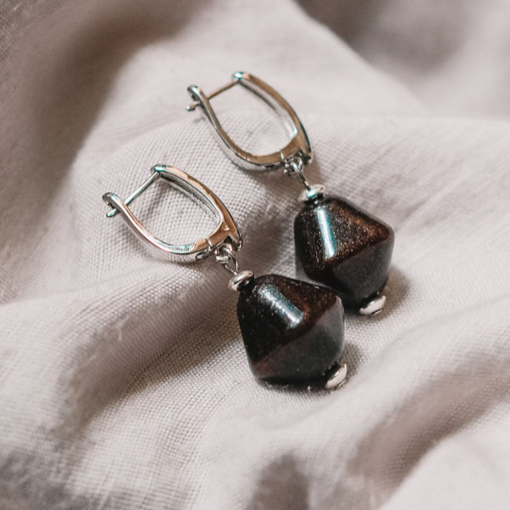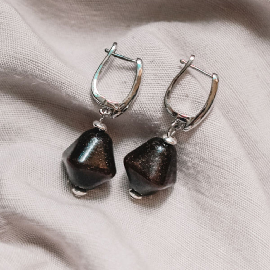 With its black pyramid beads upcycled from coffee grounds, the Flowing sustainable silver earrings are of endless possibilities to finish your striking and ultra-glamorous look.