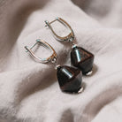Ways Out -"Flowing" Silver Oval/U-shaped Hoop Sustainable Earrings with Black Pyramid Beads