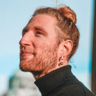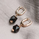 Nature-inspired jewelry, the geometric perfection - The Grounded gold hoop sustainable earrings, with small black cubes upcycled from coffee grounds, symbolize stability and purity with the repeated regular shapes representing the building blocks of existence, and reminding you to turn your mental blocks into building blocks.