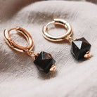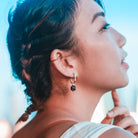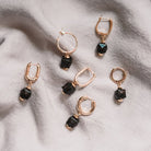 Ways Out -"Grounded" Gold Hoop Sustainable Earrings with Black Small Cube Beads