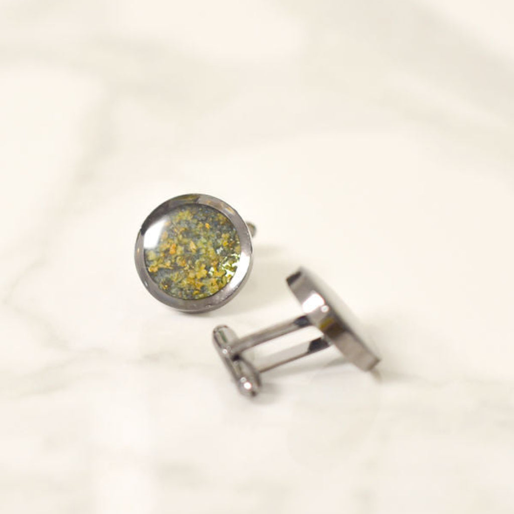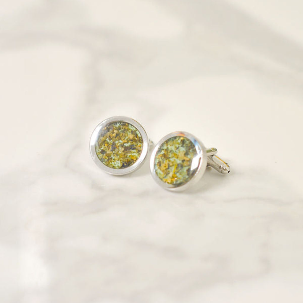Ways Out -"Mend" Sustainable Green Cufflinks Upcycled from Zucchini Peels