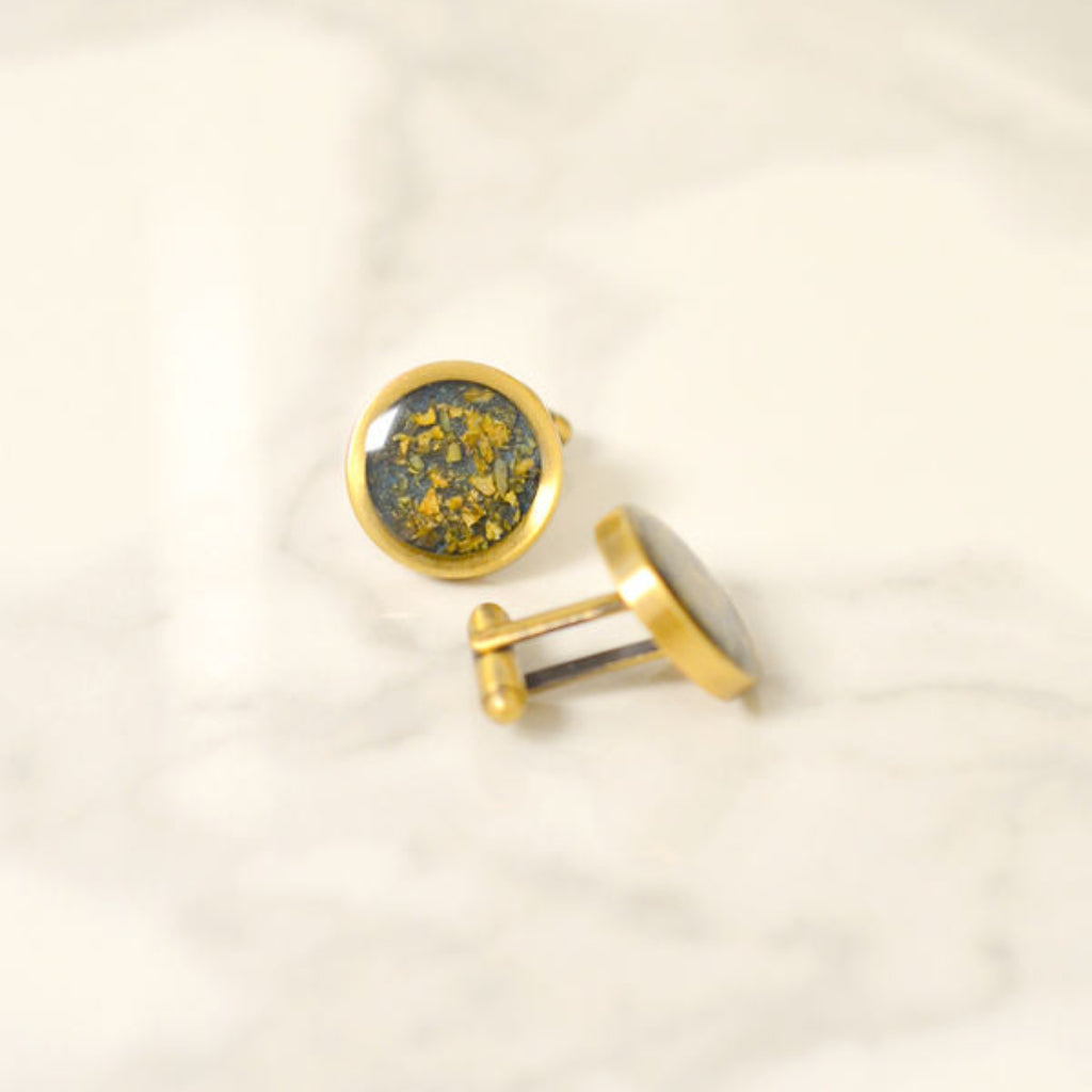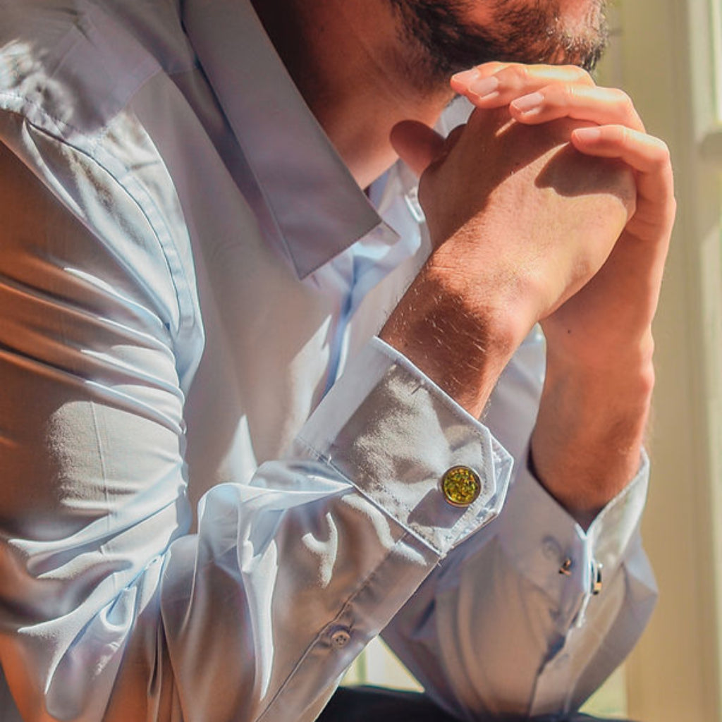 • Crafted from upcycled fruit peels and vegetable scraps, the 7-colored cufflinks channel the grace of stillness and the power of grounded presence. Like a soft light at dusk or a steady hand in the dark, these cufflinks offer quiet certainty strength that does not demand attention, but holds it nonetheless.