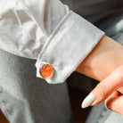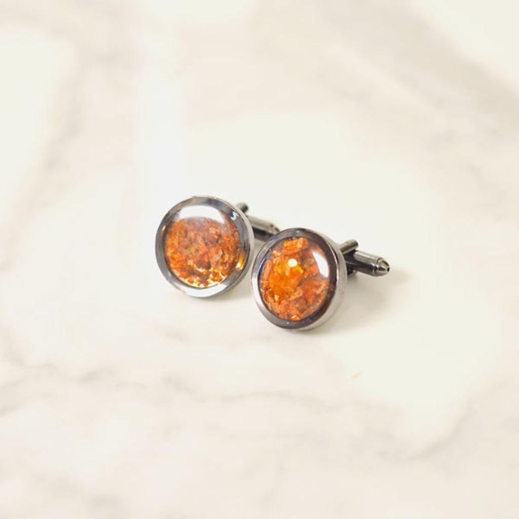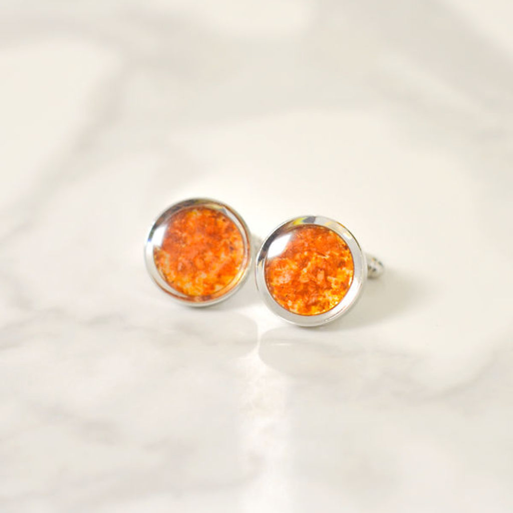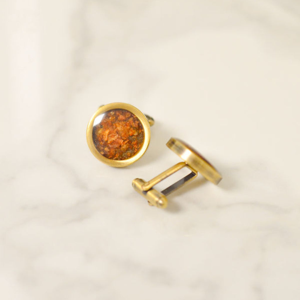 These sustainable light brown cufflinks are rooted in the everyday strength of devotion. Upcycled from onion peels, they honor the quiet work of nurturing, growing, and returning again and again. Coin holders available in 4 colors.