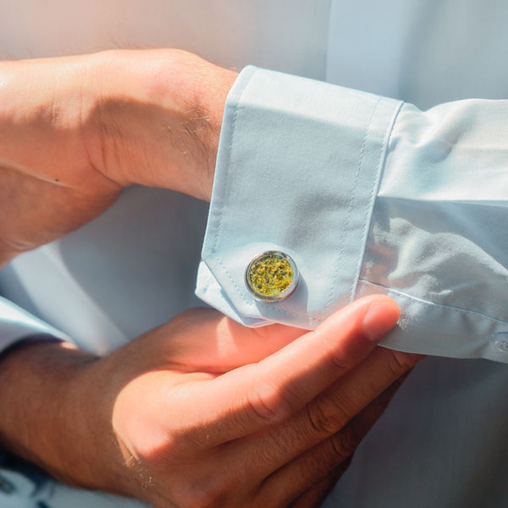 - Crafted from upcycled fruit peels and vegetable scraps, the 7-colored cufflinks channel the grace of stillness and the power of grounded presence. Like a soft light at dusk or a steady hand in the dark, these cufflinks offer quiet certainty strength that does not demand attention, but holds it nonetheless.
