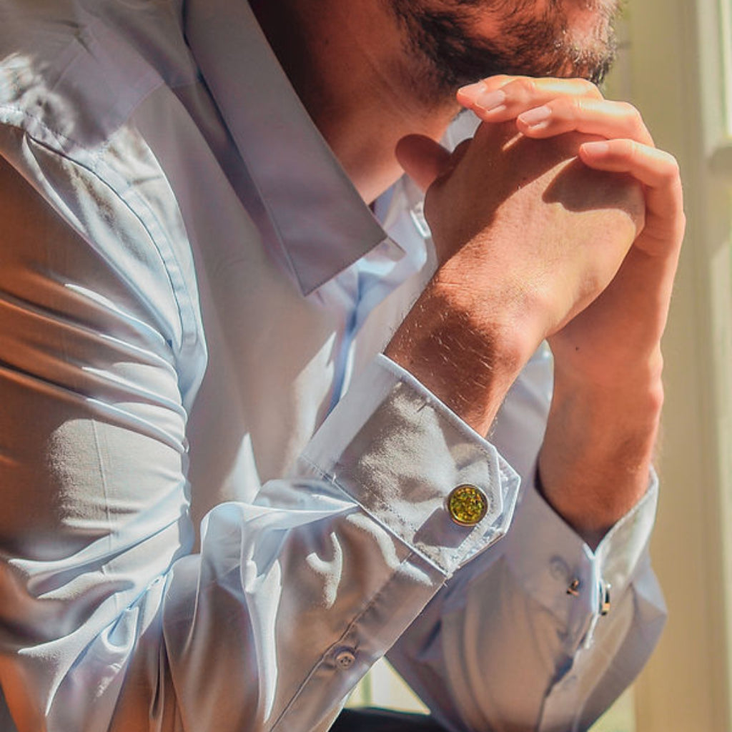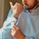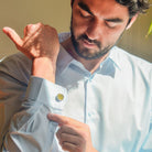 Still waters run deep. These serene sustainable blue cufflinks, drawn from butterfly pea flower pigments, speaks to the kind of depth that soothes rather than stuns. Coin holders available in 4 colors.