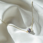 Ways Out -"Authentic" Gold Sustainable Necklace with Purple Small Cube Bead