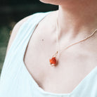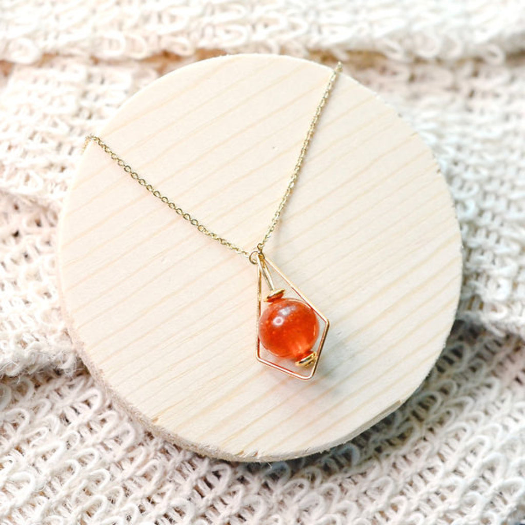 This Courage Gold Sustainable Kite-Framed Pendant Necklace with Orange Round Bead upcycled from the peels of mandarin orange is a daily reminder that you can always call upon your courage to change.