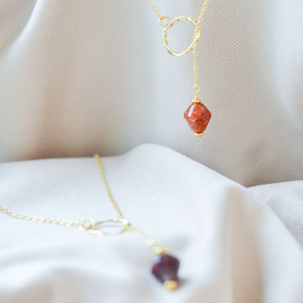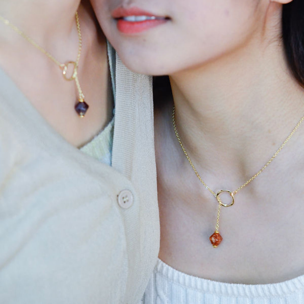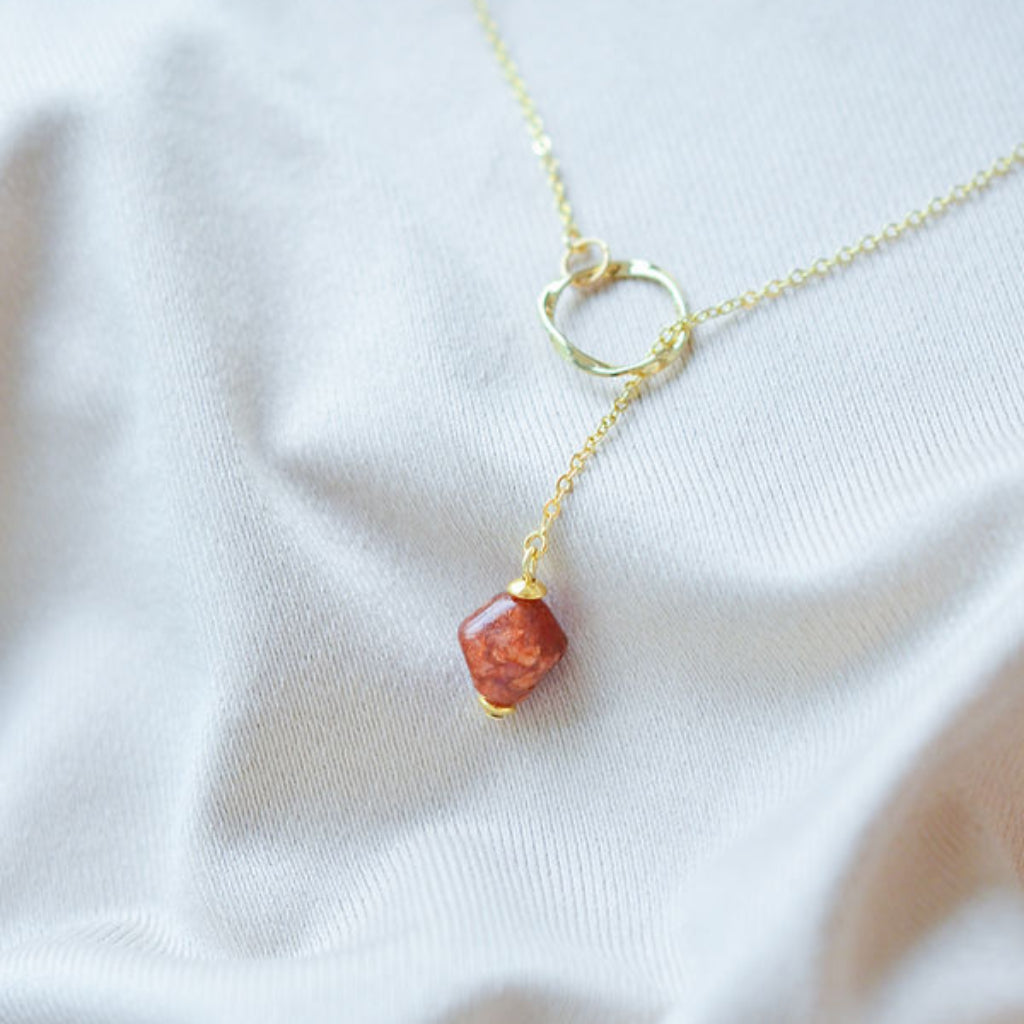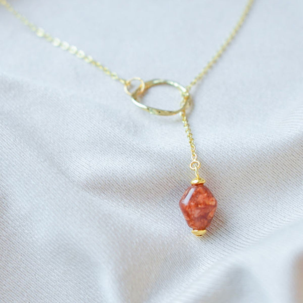 Ways Out -"Dawn" Gold Sustainable Dangle Necklace with Brown Octahedron Bead