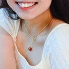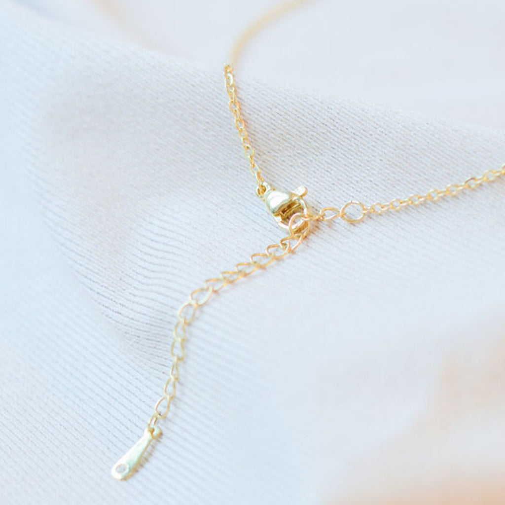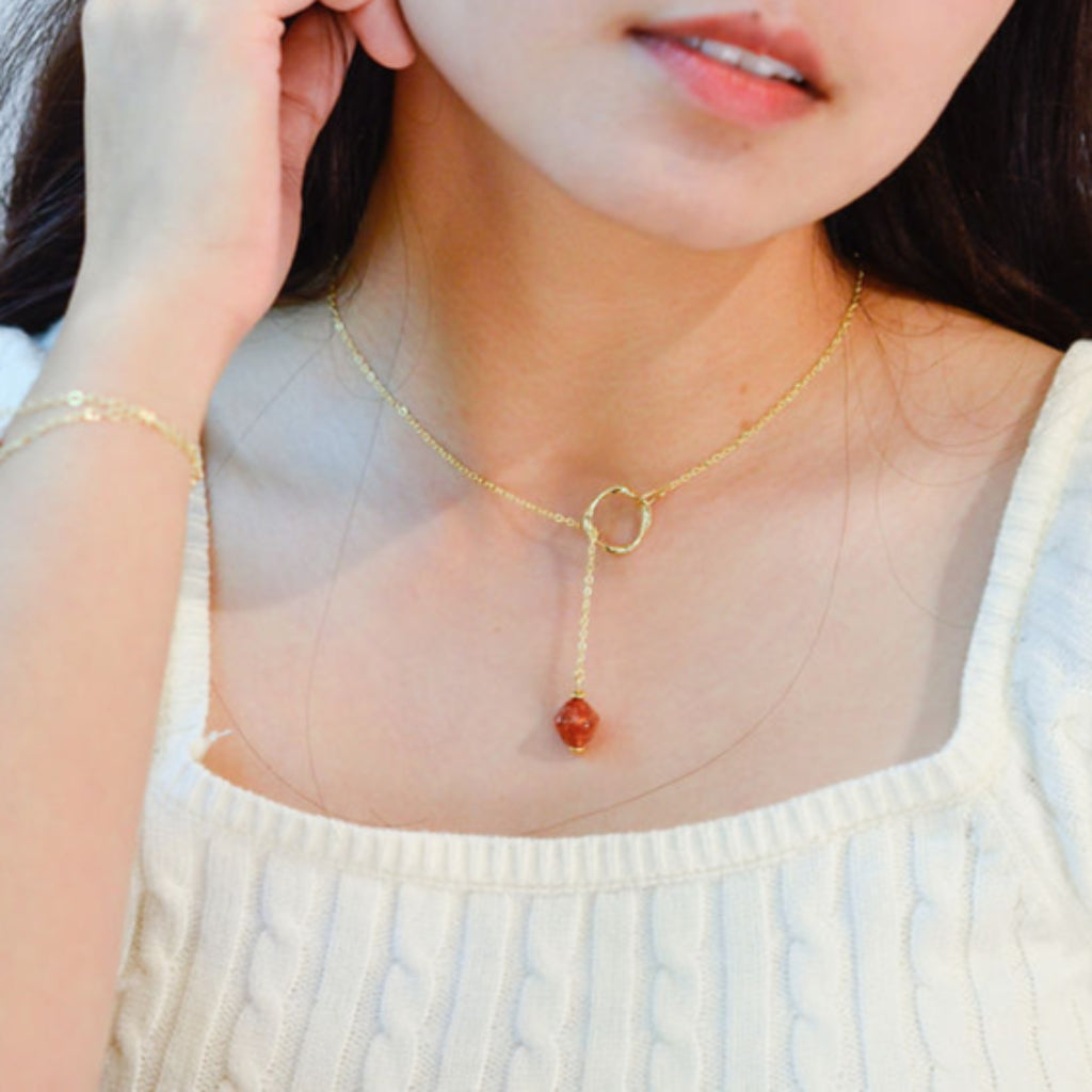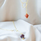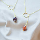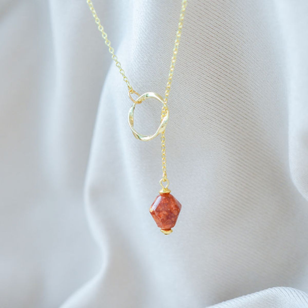 Ways Out -"Dawn" Gold Sustainable Dangle Necklace with Brown Octahedron Bead