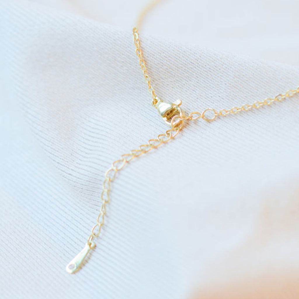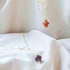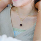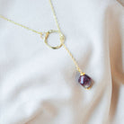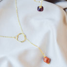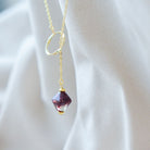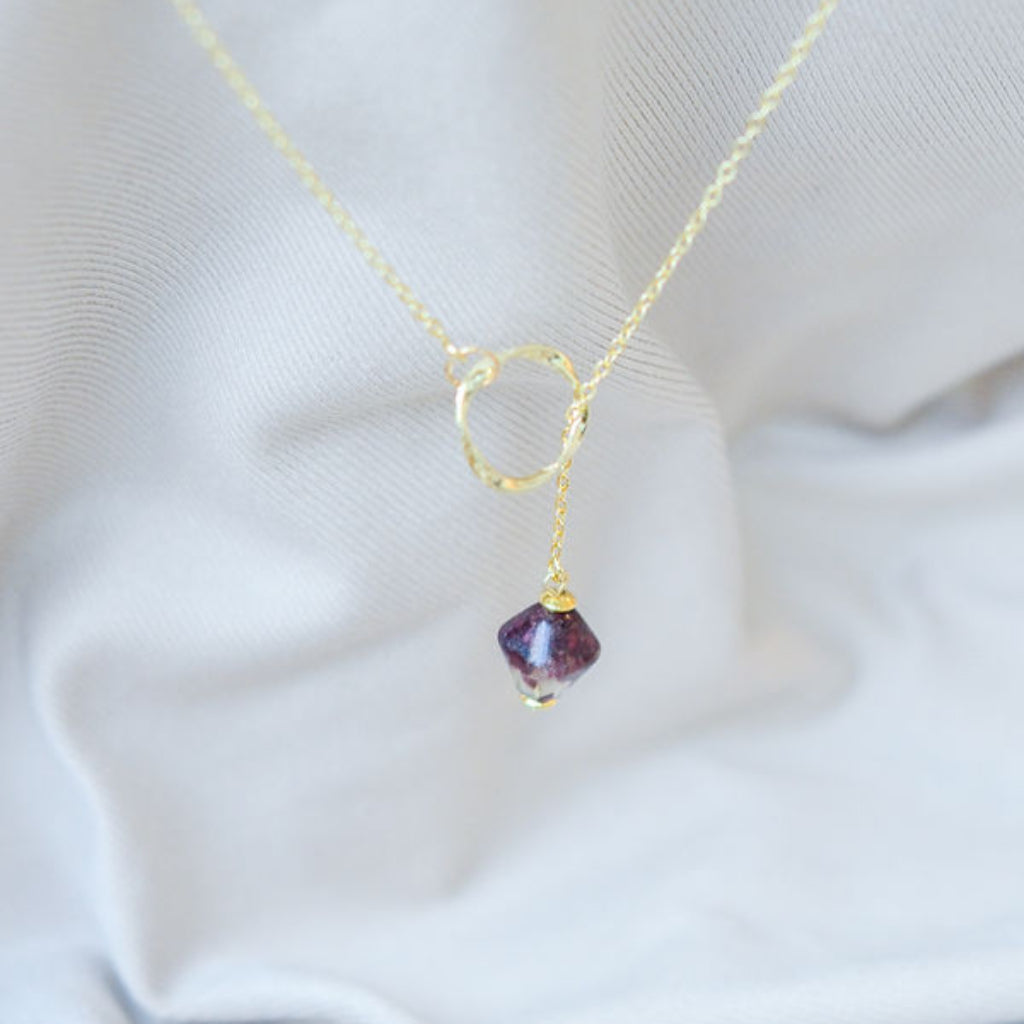 Ways Out -"Dawn" Gold Sustainable Dangle Necklace with Purple Octahedron Bead