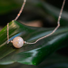 The Enduring rose gold sustainable adjustable necklace, adorned with cascading pink beads crafted from garlic peels, reflects a tale of resilience and radiant elegance. This piece embodies the enduring strength of a woman. Just like the steady glow of light on precious gems, it captures a quiet yet unwavering brilliance shining softly, but with a strength that never dims.
