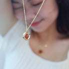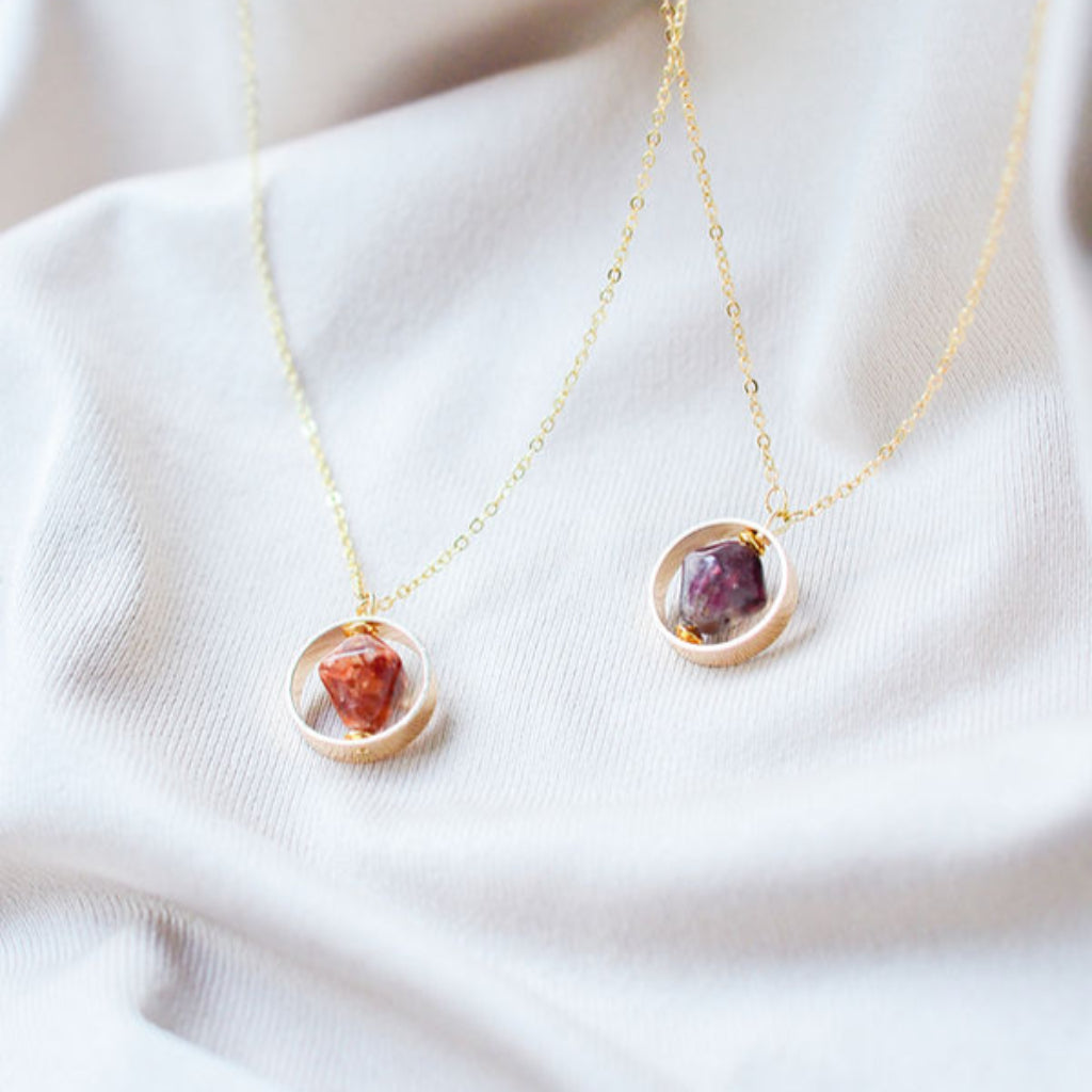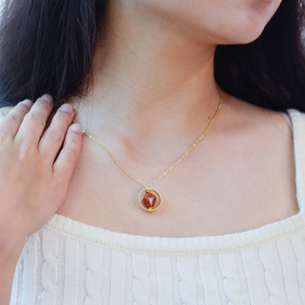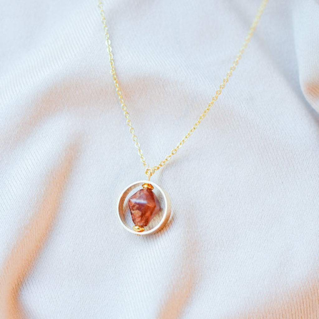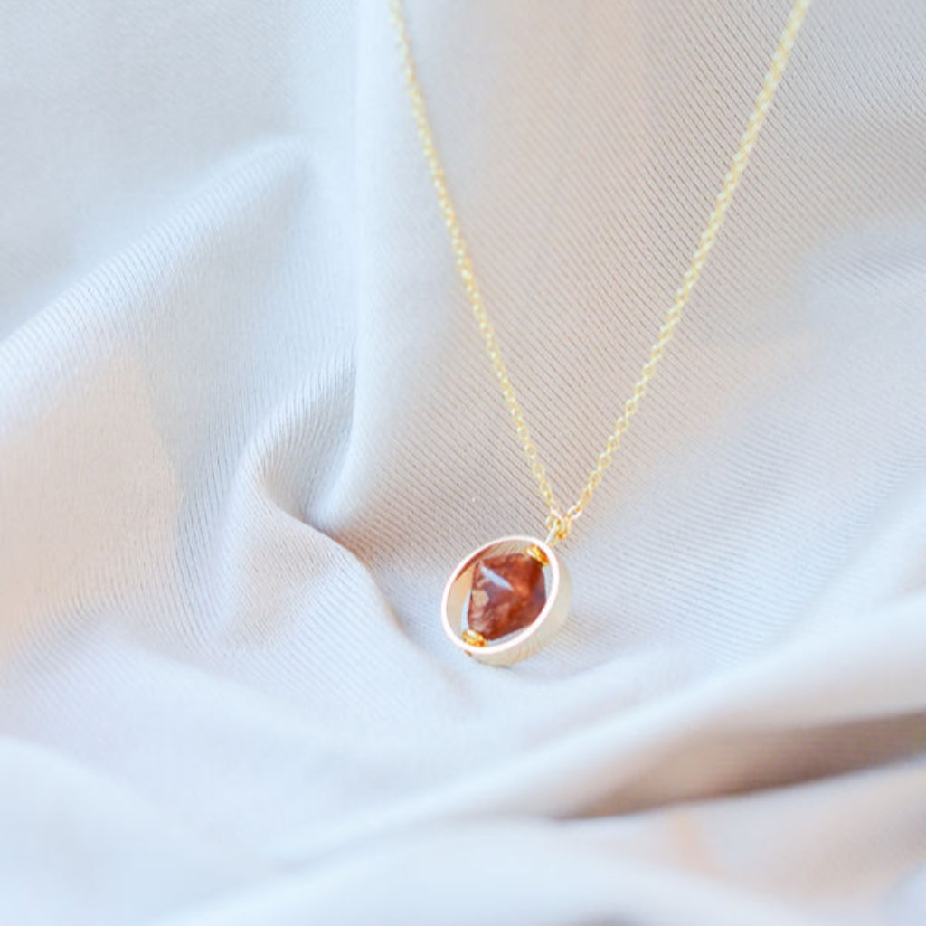 Ways Out -"Moonrise" Gold Sustainable Ring-Pendant Necklace with Brown Octahedron Bead