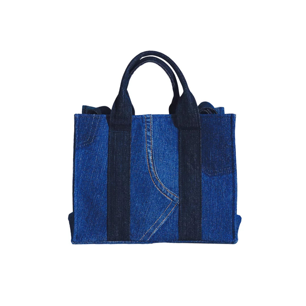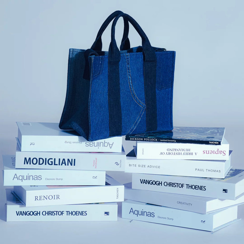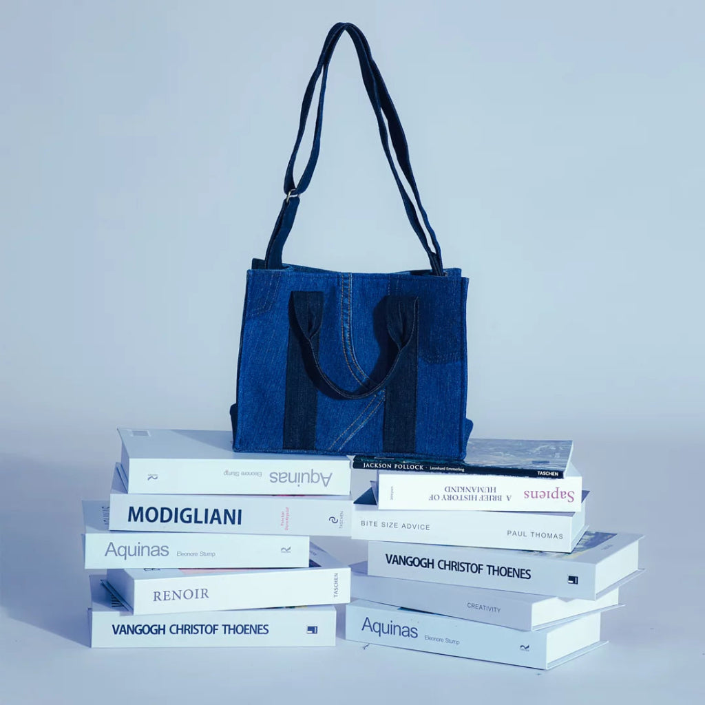 The Re/Project denim bag designed in collaboration with the Fashion & Innovation Management Department of Ming Chuan University and the zero-waste fashion brand Story Wear combines aesthetics and environmental protection concepts.