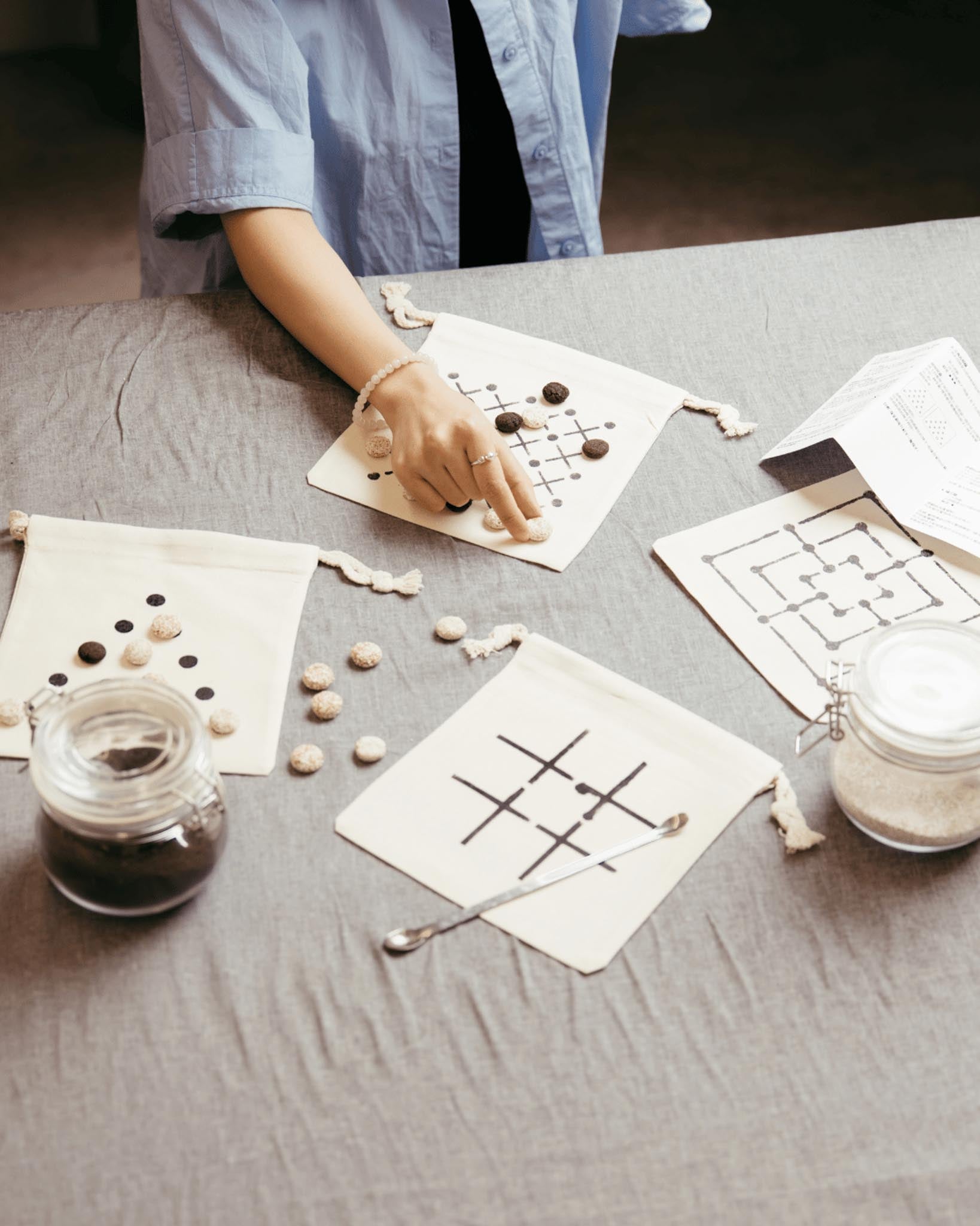 • Select 2 out of 4 games: Nine Men’s Morris, Triangle Peg Solitaire, Five Field Kono, and Tic Tac Toe