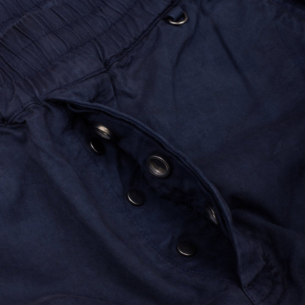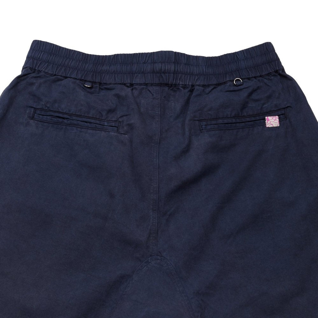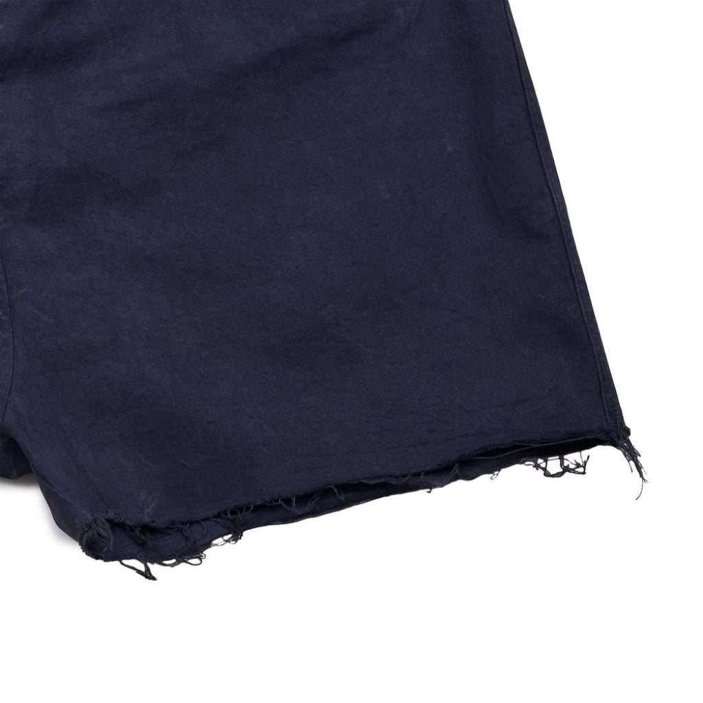 Bonham 短褲採用精細的工藝製作而成,首先浸泡在活性靛藍染料中。經過仔細的氧化和徹底的沖洗,織物形成了藍色色調的基礎。為了使紡織品呈現深藍色,我們採用了多步驟染色工藝。注入礦物離子的五倍子在這種複雜的技術中充當媒染劑。癭,是指中國漆樹(Rhus Chinensis)因受到昆蟲侵擾而形成的癭子。幾個世紀以來,這些五倍子一直被用於中藥、墨水製造和紡織品染色。經過多輪染色,短褲逐漸呈現出理想的質樸的海軍藍色調。