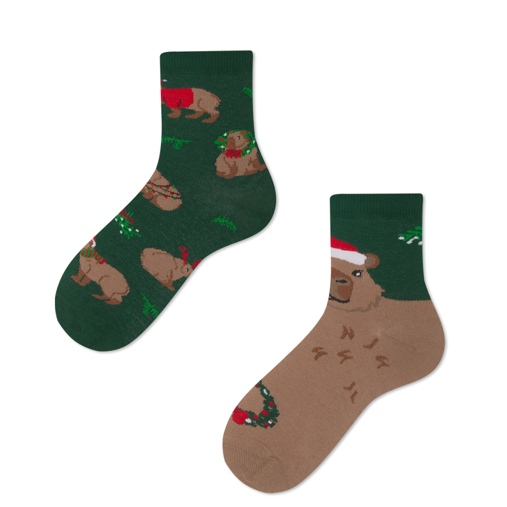 聖誕節 Capybara 不急著追逐馴鹿或包裝禮物 - 反正魔法也會找到她,何必急於一时呢?Merrybara 和她來自南美洲的表妹一樣,都是無憂無慮的靈魂,只是爪子裡拿著一杯可可,頭上戴著聖誕老人帽。她喜歡坐在抽屜裡,看著節日的混亂,假裝聖誕節是她發明的。畢竟,總得有人確保在這瘋狂的十二月,沒有人忘記......放鬆。