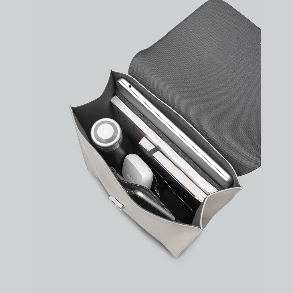 Spläsh ID Backpack 14" 以俐落結構與極簡輪廓為設計核心,選用環保材質打造,具備 8,000mm 防水等級,隱藏式扣環設計維持包身前側的純粹線條。可容納大多數 11"–14" 筆電,無論搭配俐落正裝或休閒城市穿搭,皆展現建築感美學與實用機能,是兼具風格與功能的理想夥伴。
