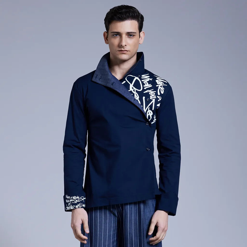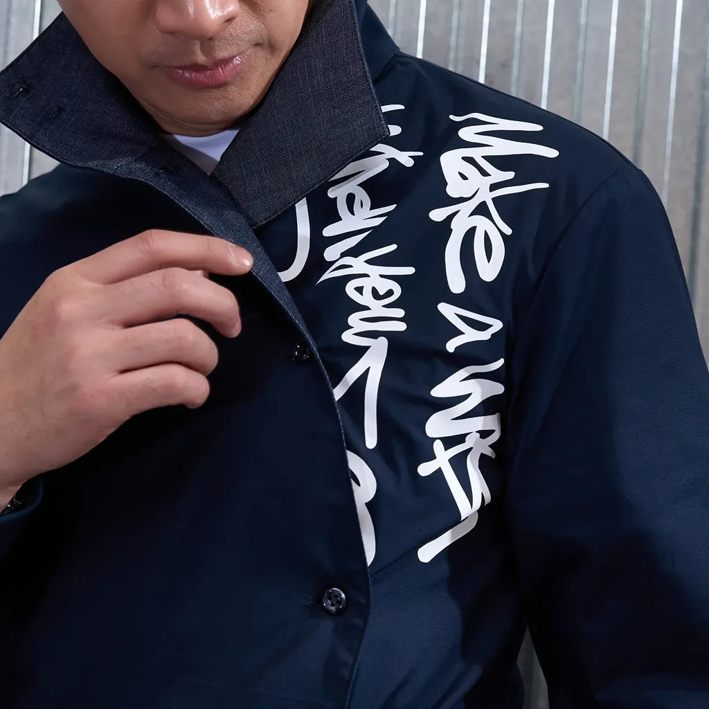 Storywear - 手工丹寧拼接絲瓜領中長版外套