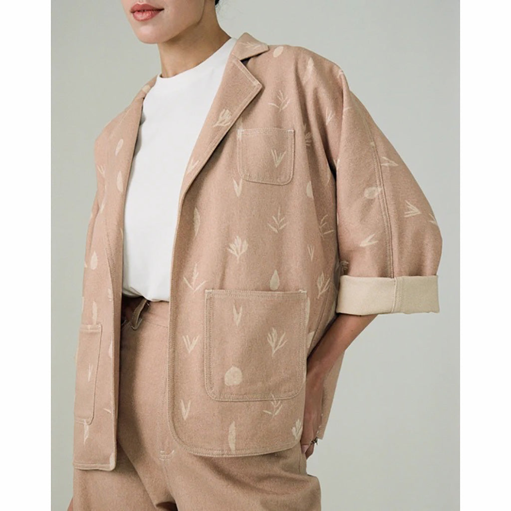 "Verse II - Learn From Nature" 系列旨在展現自然與韌性。靈感源自於大自然和那些能在最意想不到的惡劣環境中茁壯成長的植物群落,就像人類學習、適應並克服困難一樣。這款牛仔和服採用無水染色技術,無需加熱或用水即可將顏色轉移到面料上,摒棄了傳統的染色和牛仔布洗滌工藝。