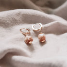 受自然啟發的珠寶,幾何的完美——Grounded 金環可持續耳環,由蘿蔔皮製成的小白色立方體,象徵著穩定和純潔,重複的規則形狀代表著存在的基石,並提醒您將心理障礙變成積木。